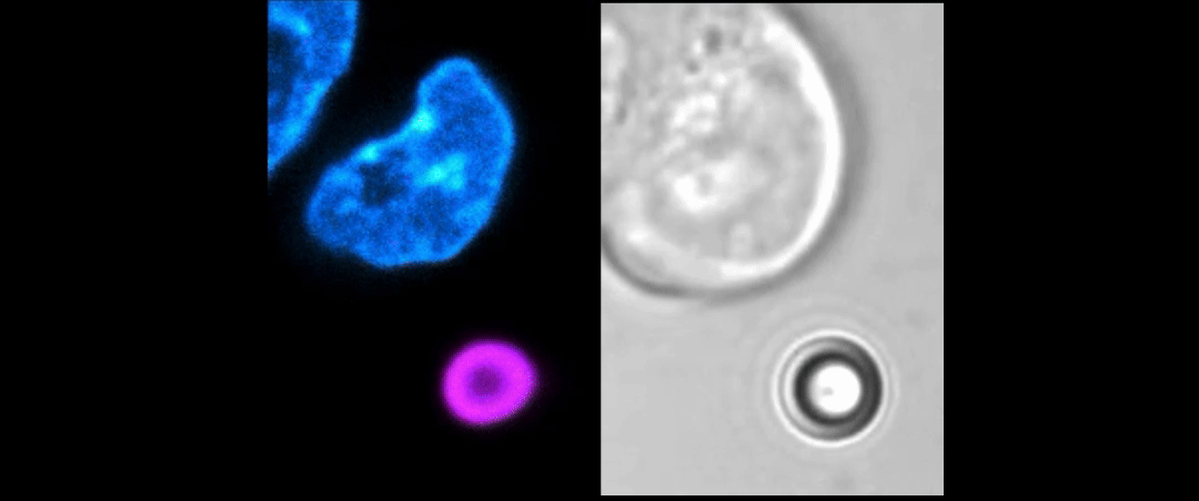 Mechanically indent and stretch the nuclei inside live cells with a micron-sized bead controlled by the laser trap. The extent of nucleus shape change produced by these external forces is similar to that when being compressed by a neighboring mitotic cell that elongates and expands in size (see left set of images).
